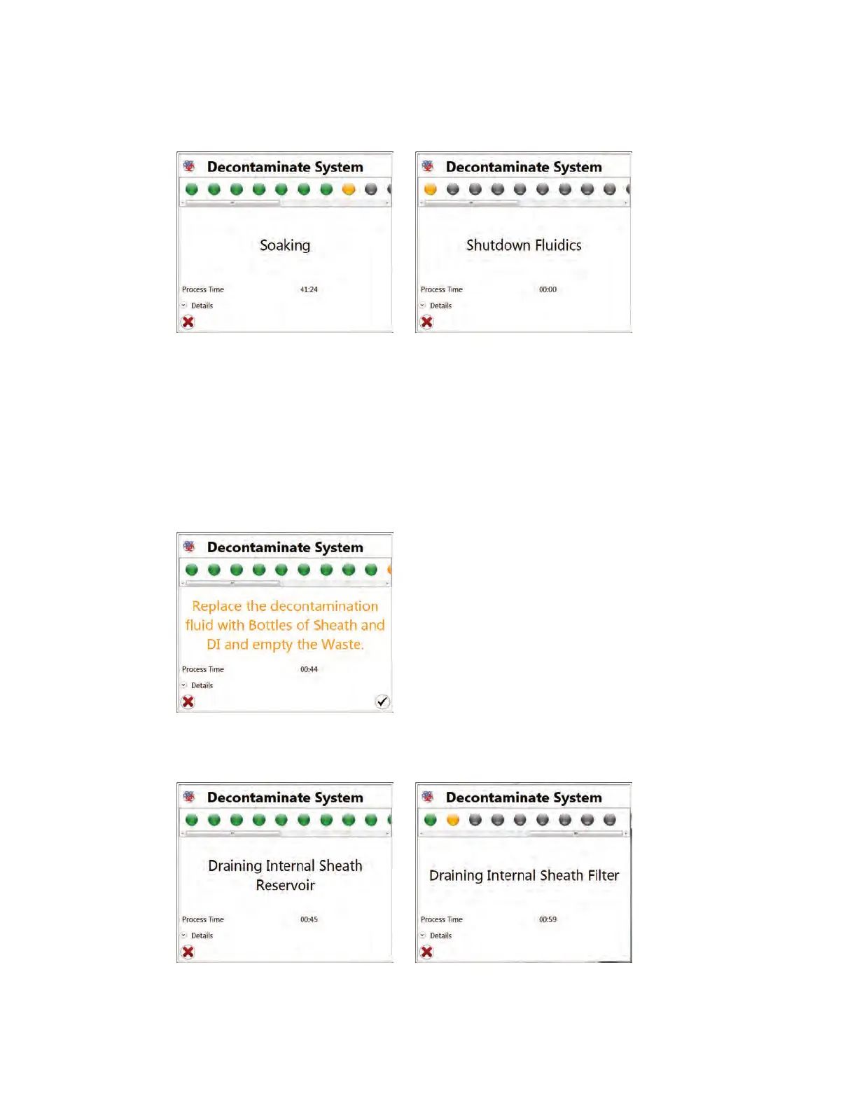 Fig. 117. Decontamination window prompting to replace fluidics.
