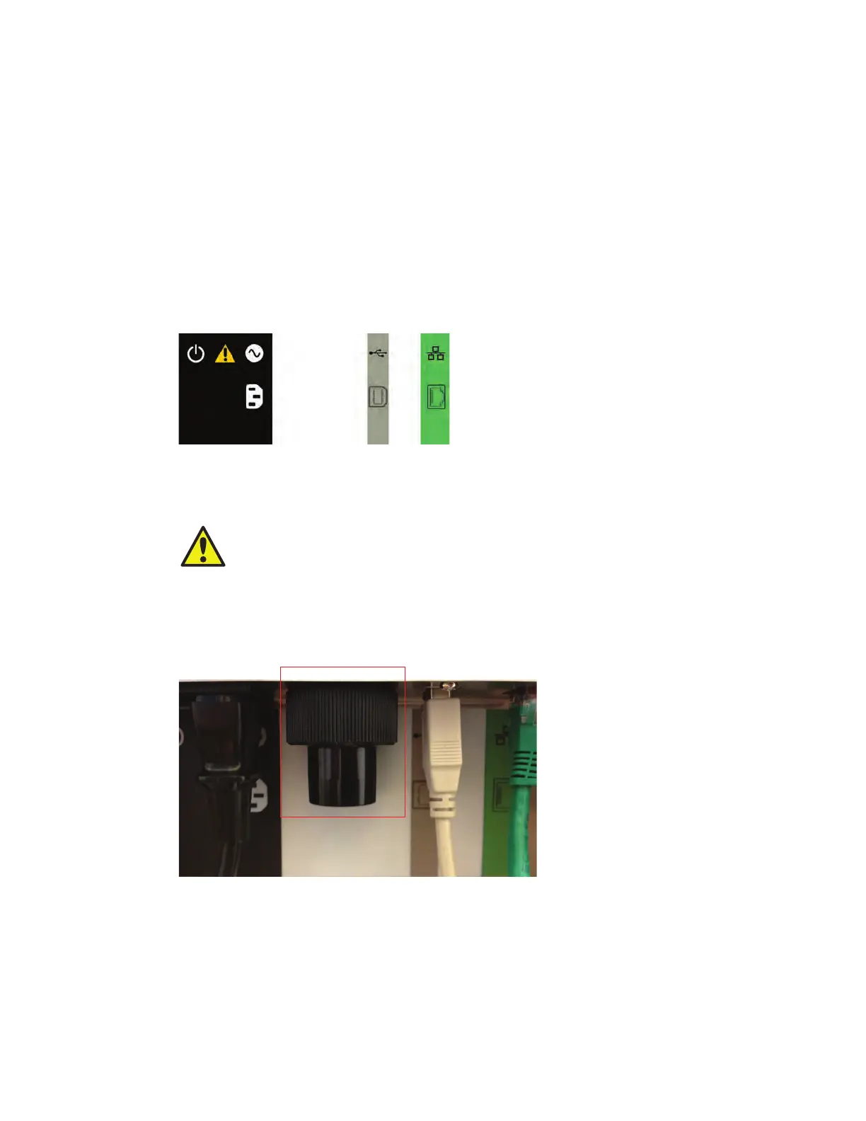 CAUTION: Three cords connect the instrument to the computer for power and