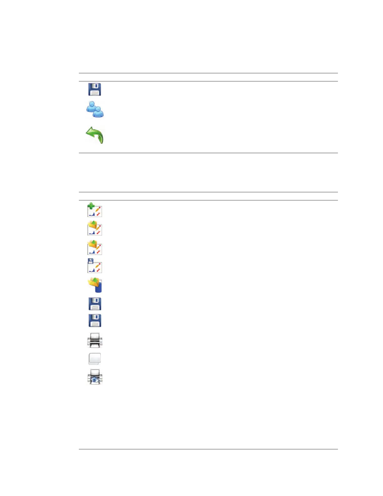 Table 9. File menu buttons and their function.