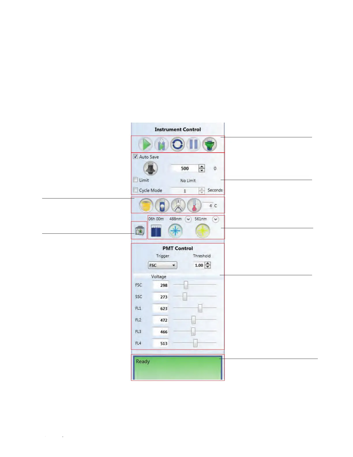 Instrument control buttons are described in Table 20 and PMT control buttons are described in