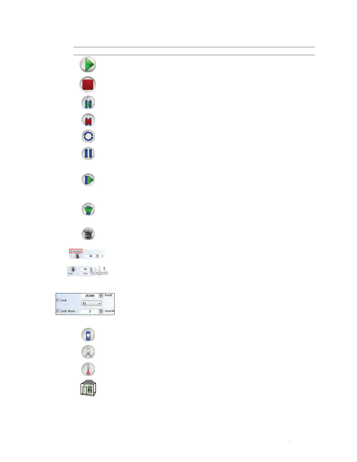 Stop Sample Stops acquisition and sample flow. Regions, gates, and annotations may