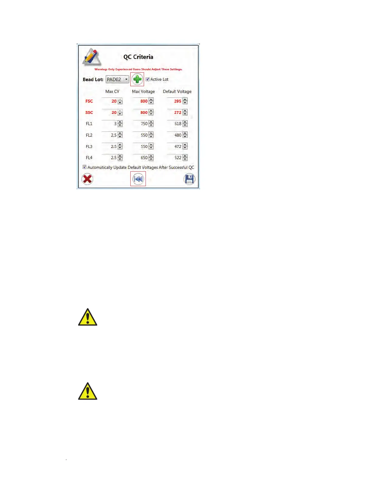 be adjusted (Figure 19). If any of these settings is adjusted, use ProLine calibration beads to