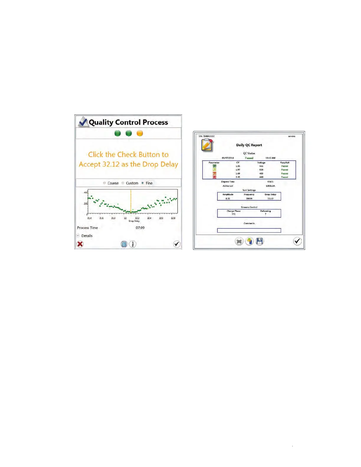 Fig. 36. A, Drop Delay Alignment Status window and B, Daily QC Report.