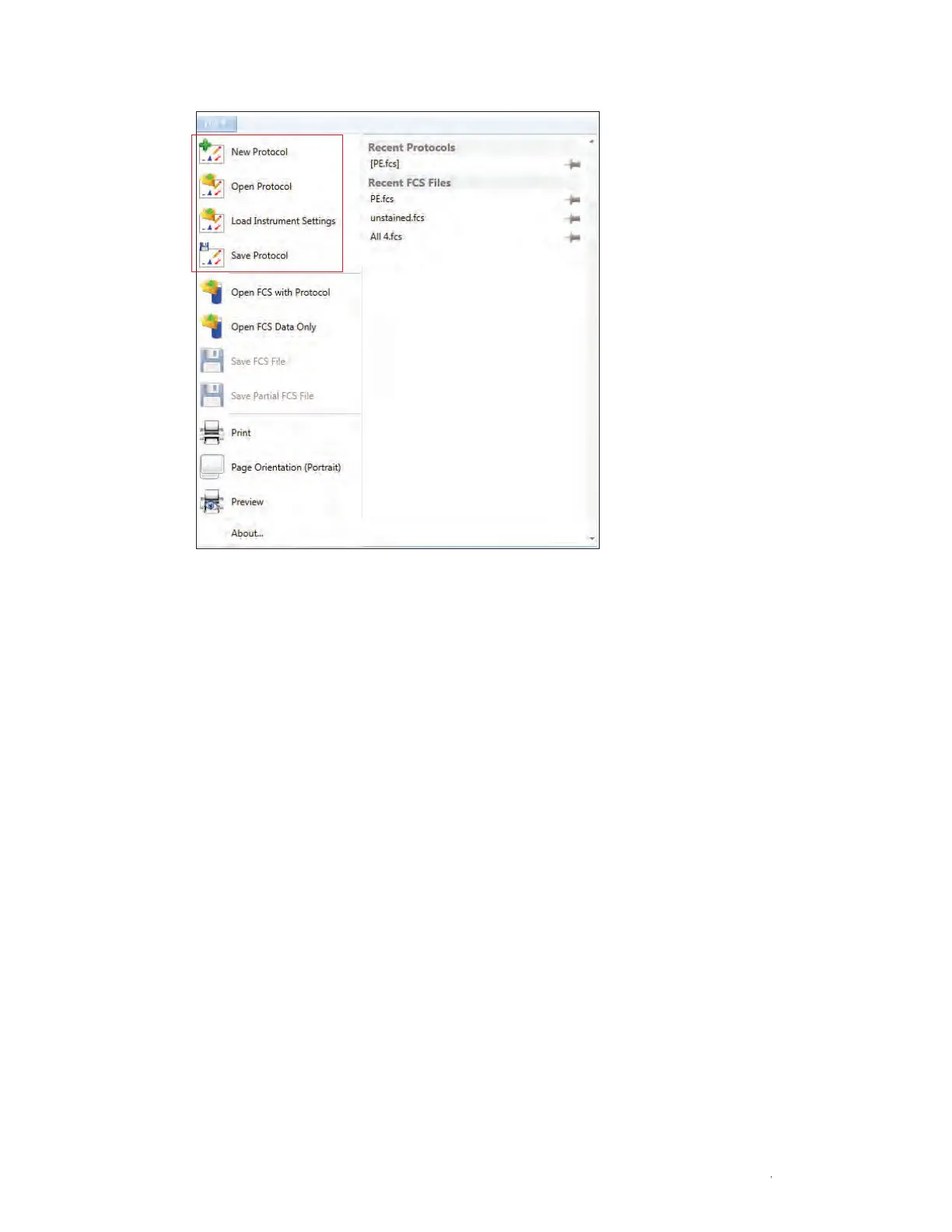 Fig. 44. File dropdown menu with New, Open, Load Instrument Settings,