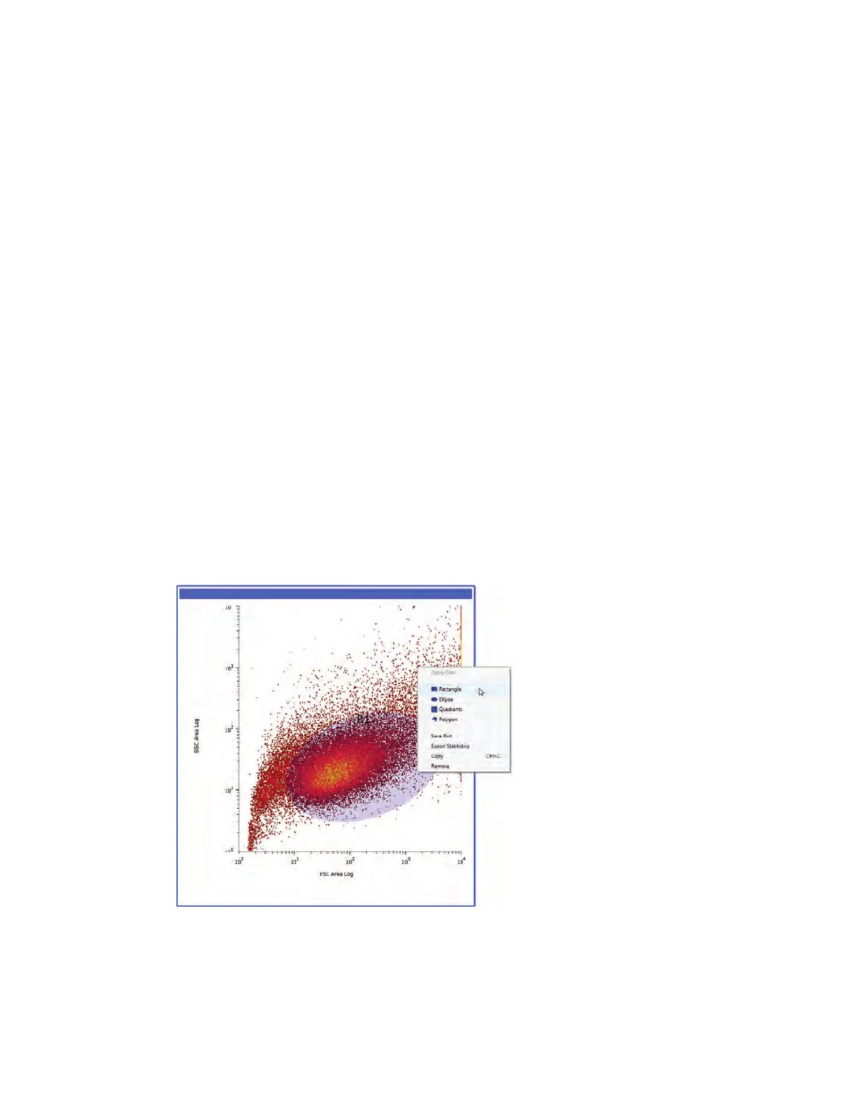 Regions can be created in a histogram or density plot to further identify populations of interest.
