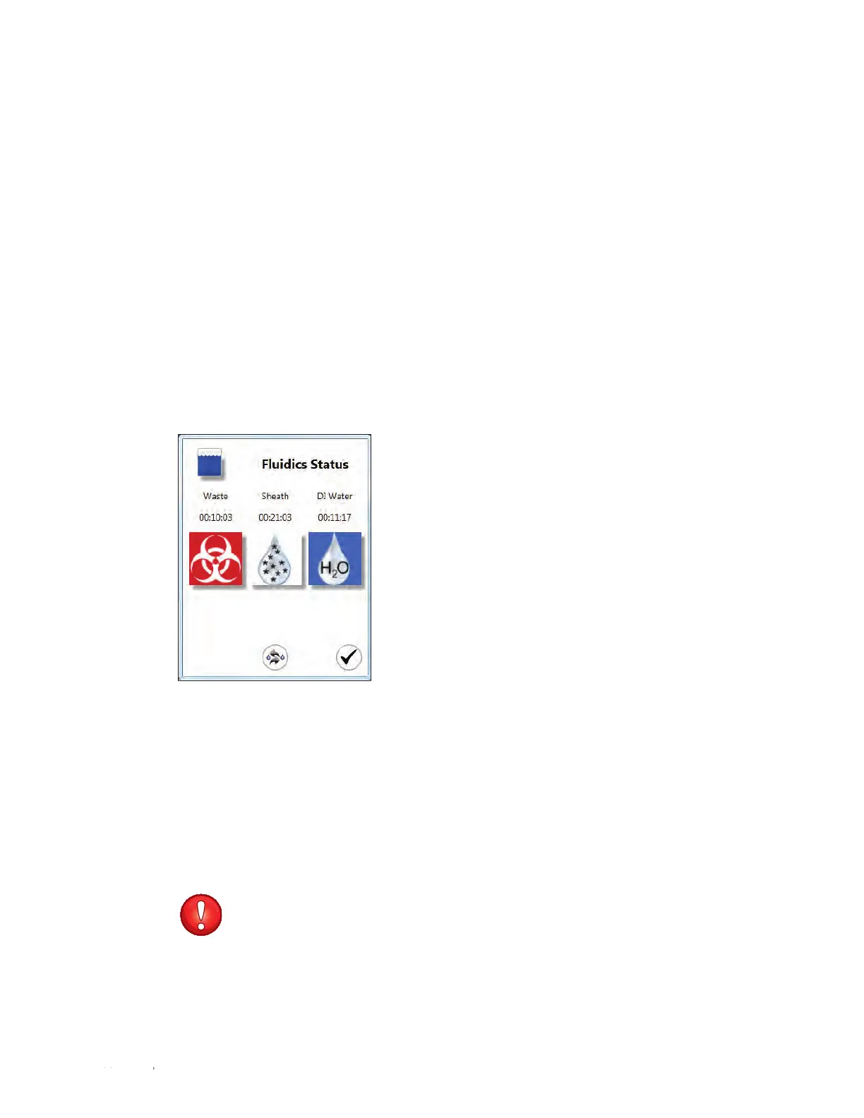 The fluidics status indicator on the instrument control panel provides information regarding the
