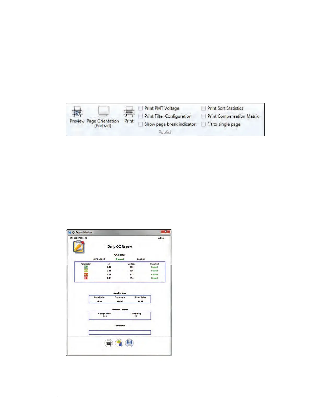 daily QC report which will show pass/fail and droplet information for the selected day (Figure 84).
