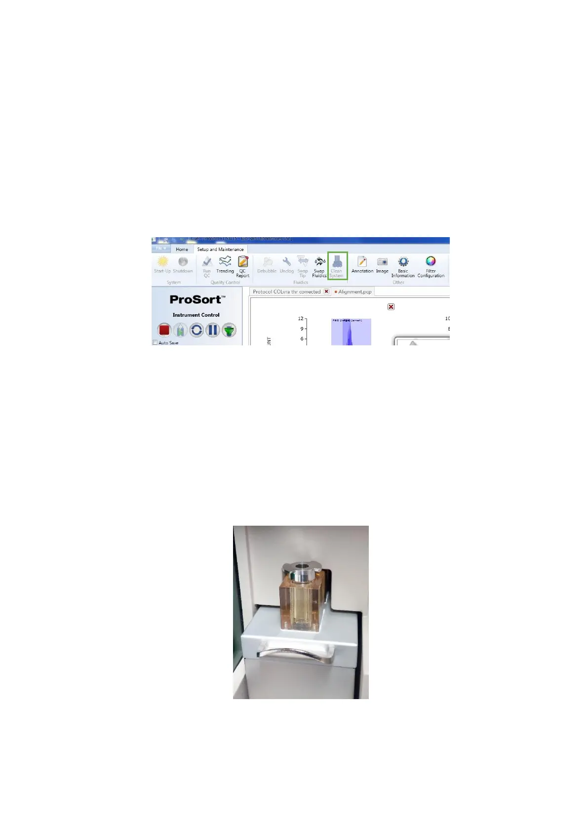 into the Wash Position” will appear in the Clean System process window. Move the