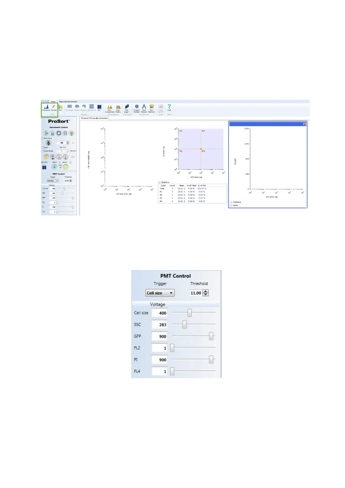 2. Create at least one histogram and dot plot by clicking in the Histogram and