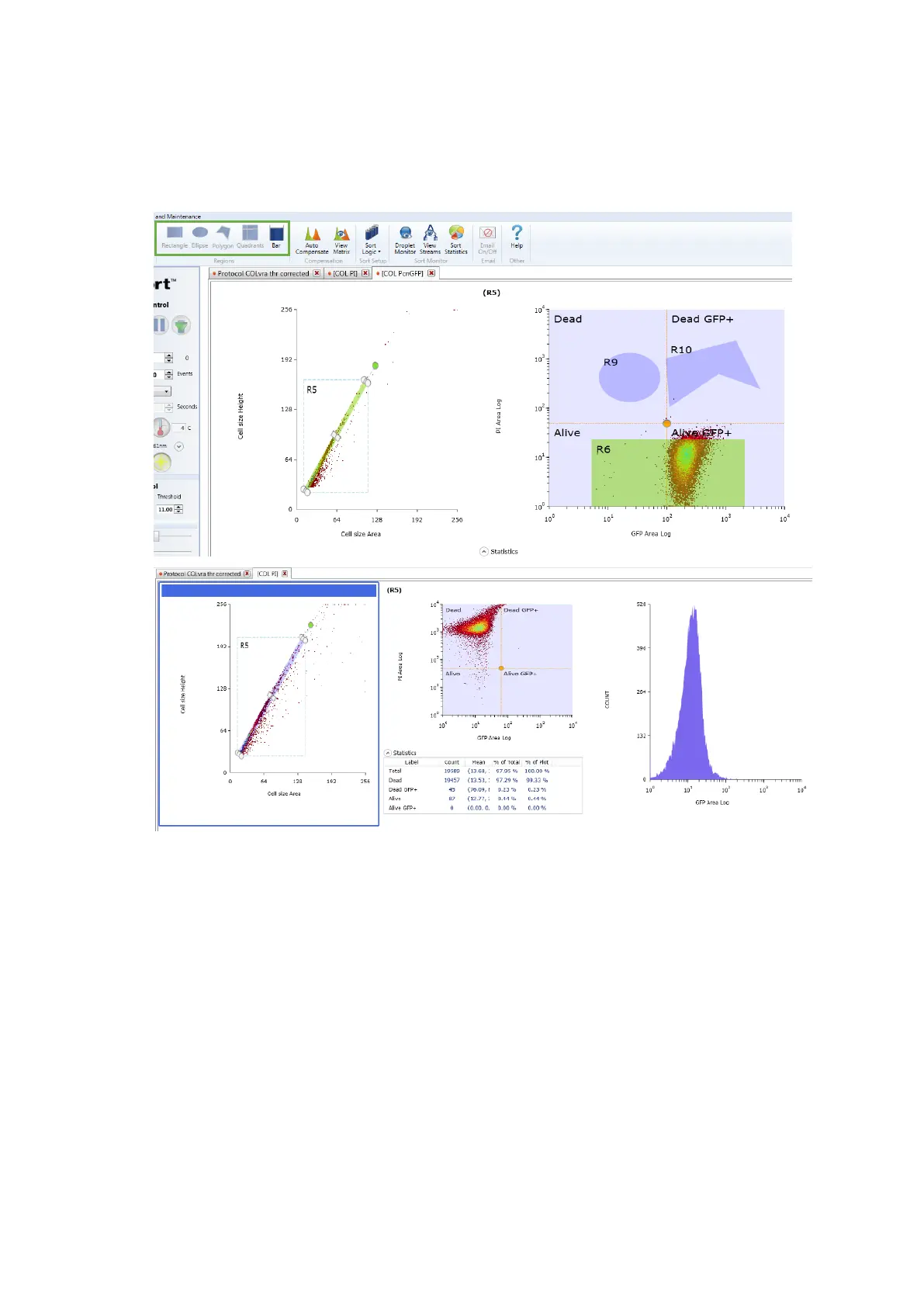 5. Set sorting regions and gates (in the Set Up and Maintenance tab) on plots with