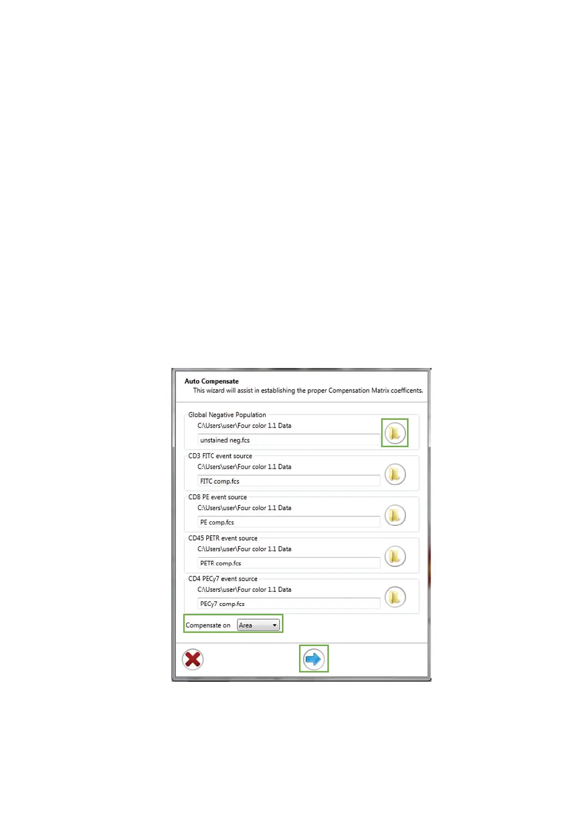 6. Locate and select the single control FCS file for each parameter