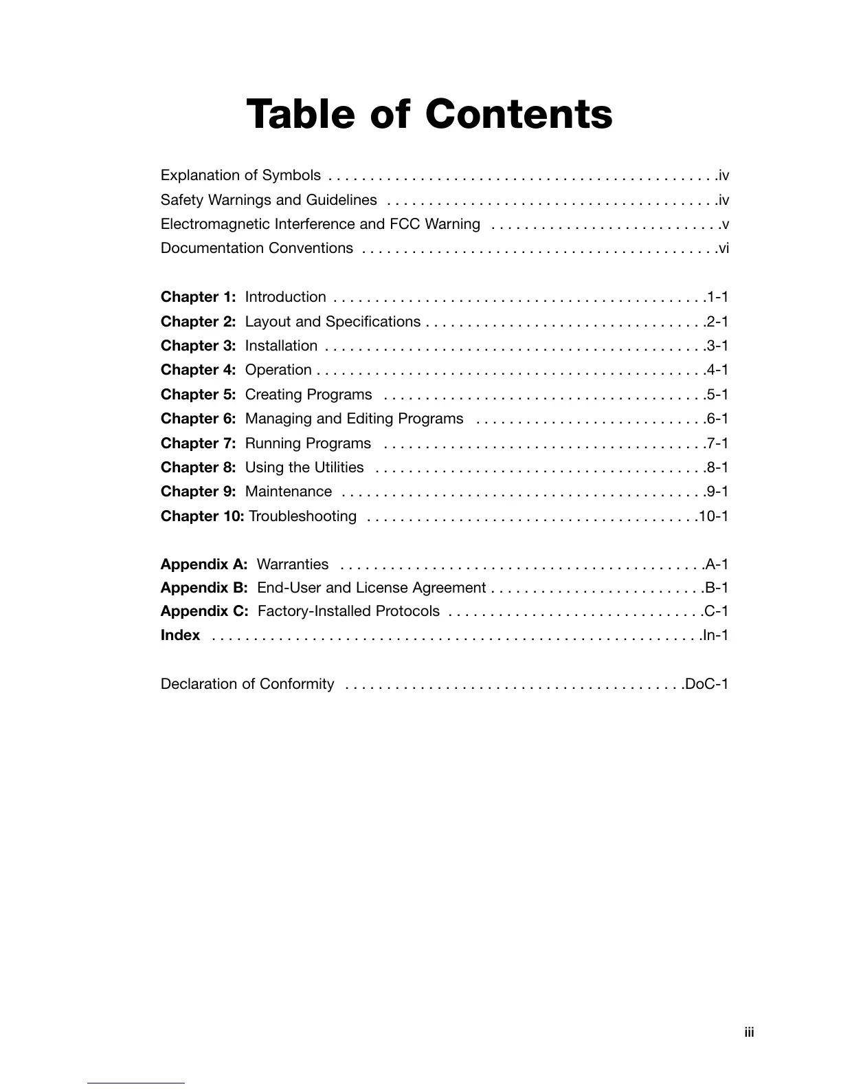 Electromagnetic Interference and FCC Warning . . . . . . . . . . . . . . . . . . . . . . . . . . . .v