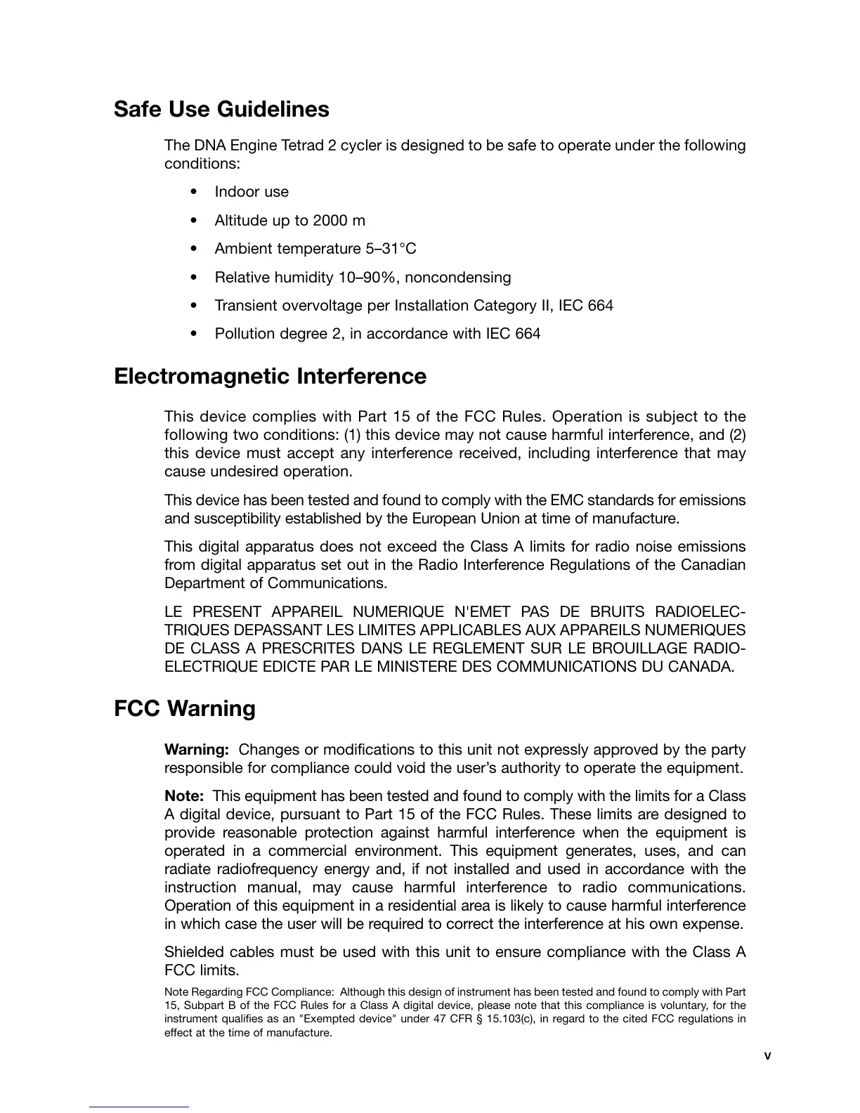The DNA Engine Tetrad 2 cycler is designed to be safe to operate under the following