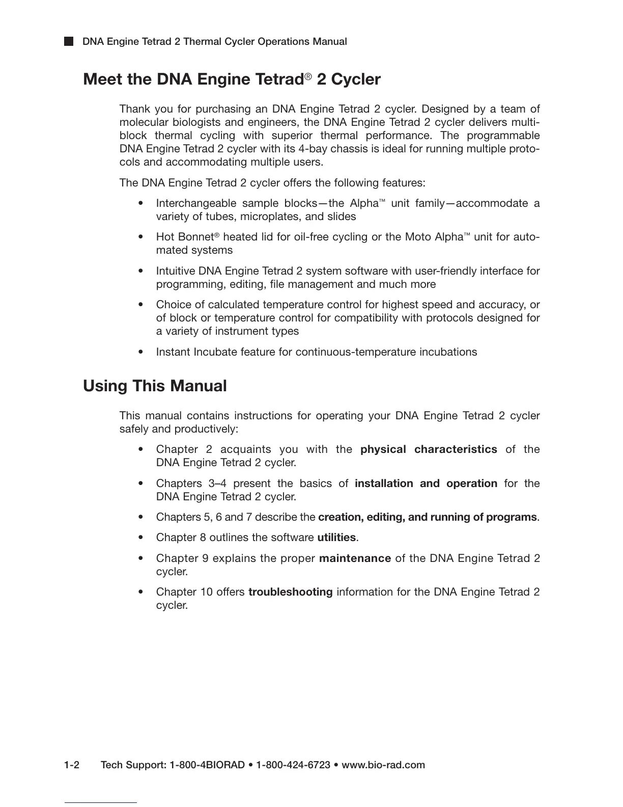 This manual contains instructions for operating your DNA Engine Tetrad 2 cycler