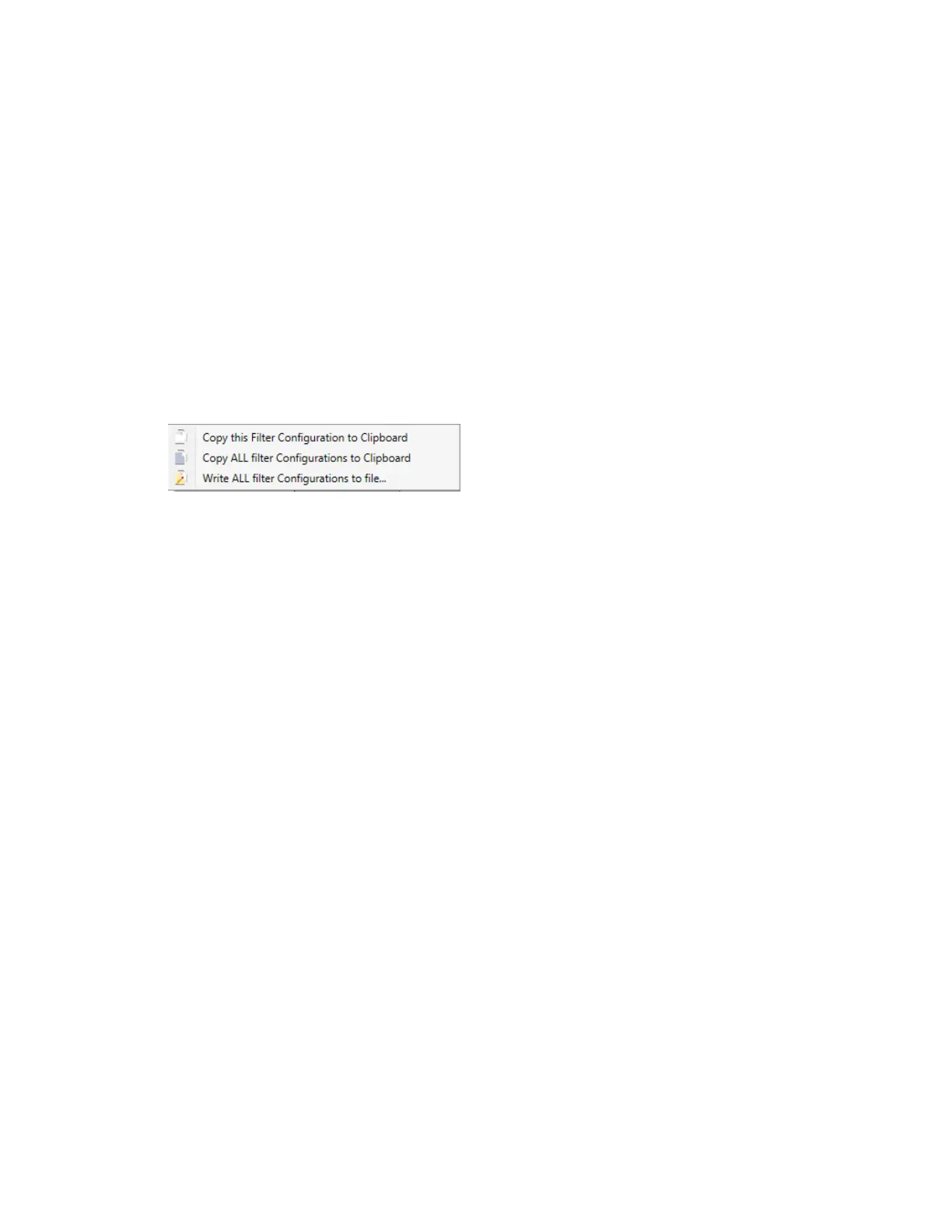 You can copy a single filter configuration or all filter configurations to the clipboard. The copied item, in