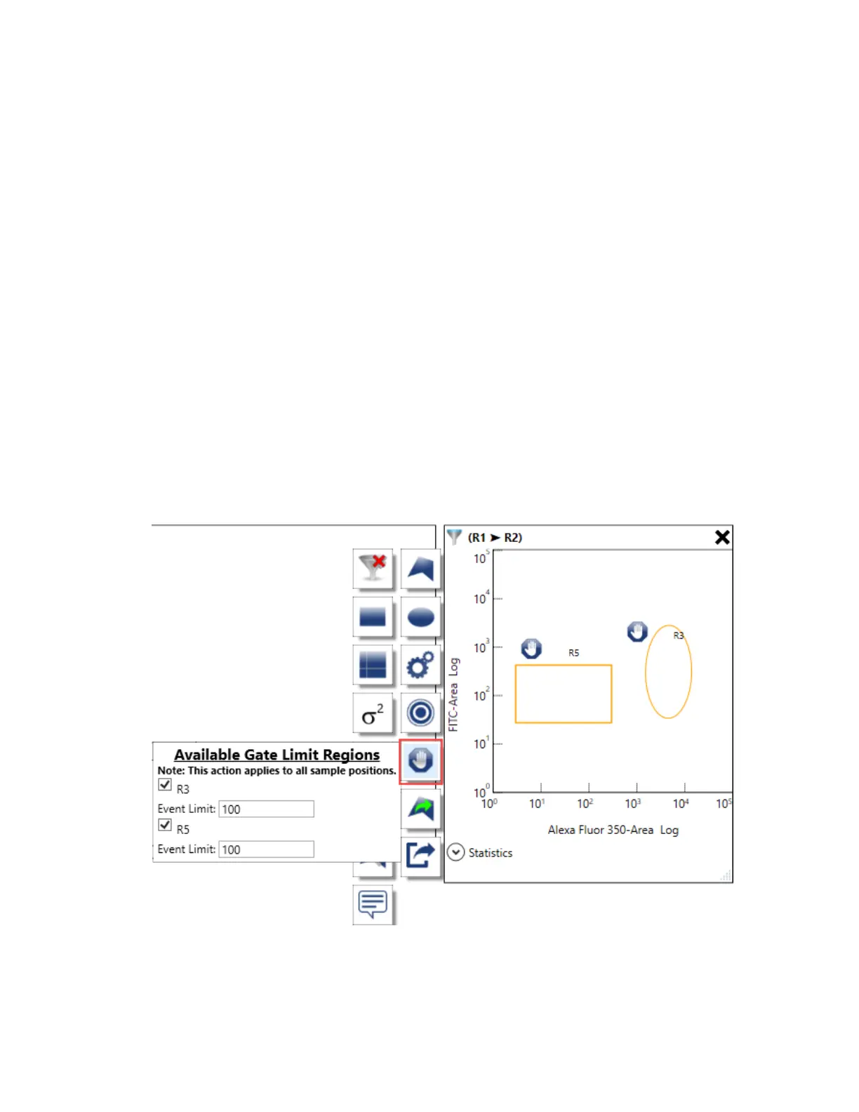 4. If needed, change the Event Limit value for each gated region.