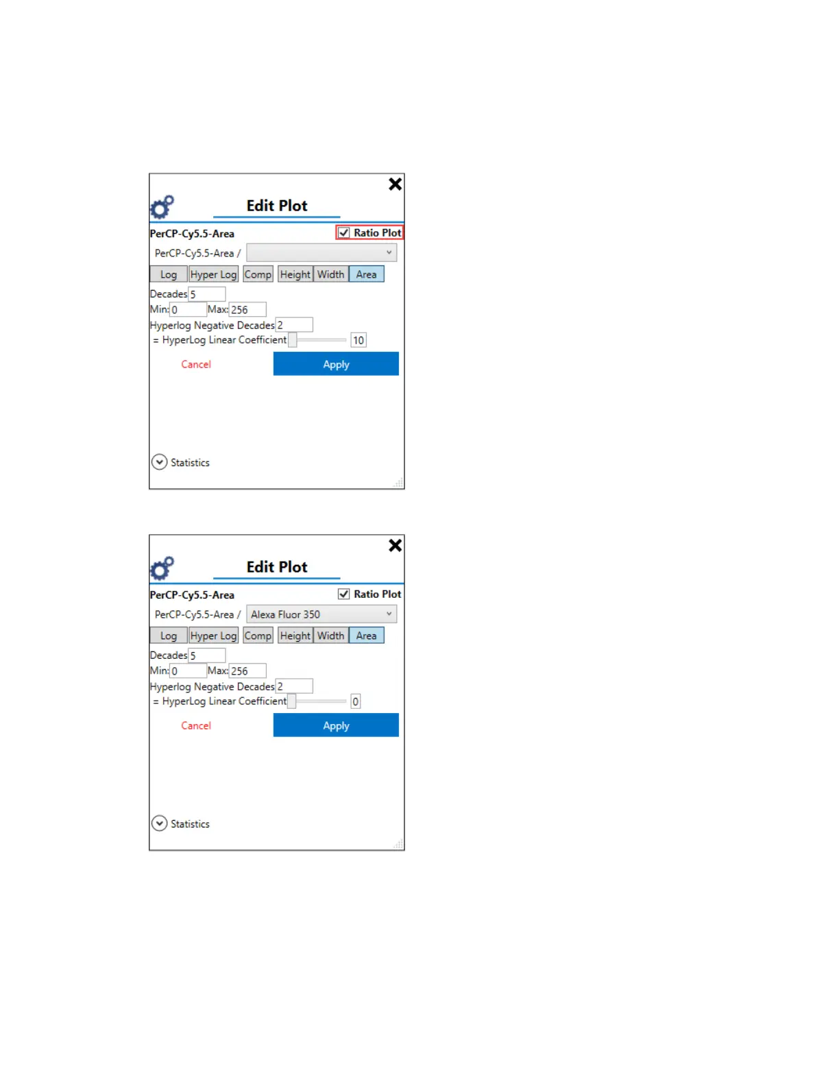 6. Select a second parameter to use for the ratio denominator.