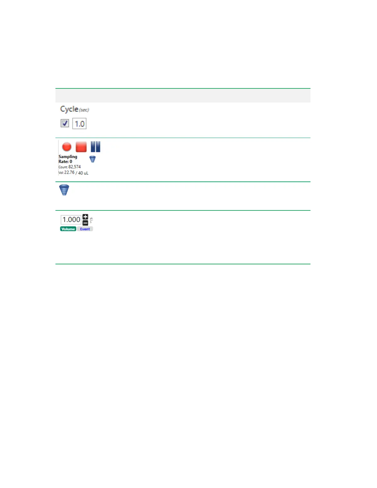 Note: Event, volume, and gate limits apply only when recording data in Setup mode.