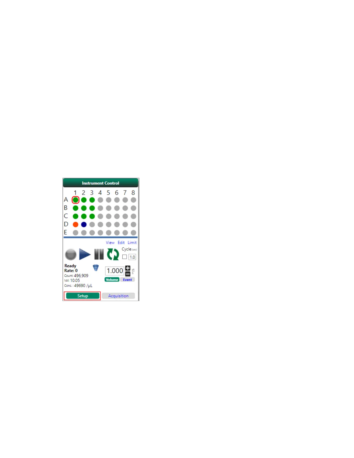 3. Click Setup in the Instrument Control panel.