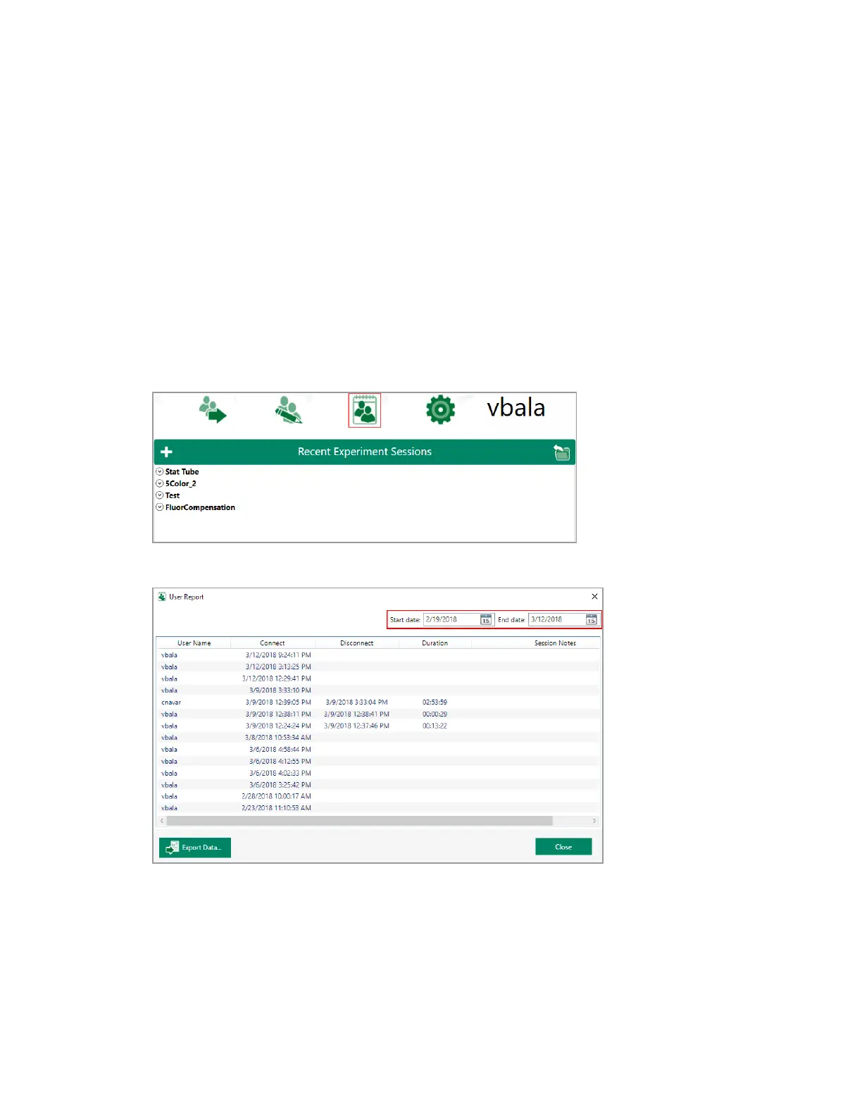 These reports track usage over time and include session notes entered by logged-in users. These