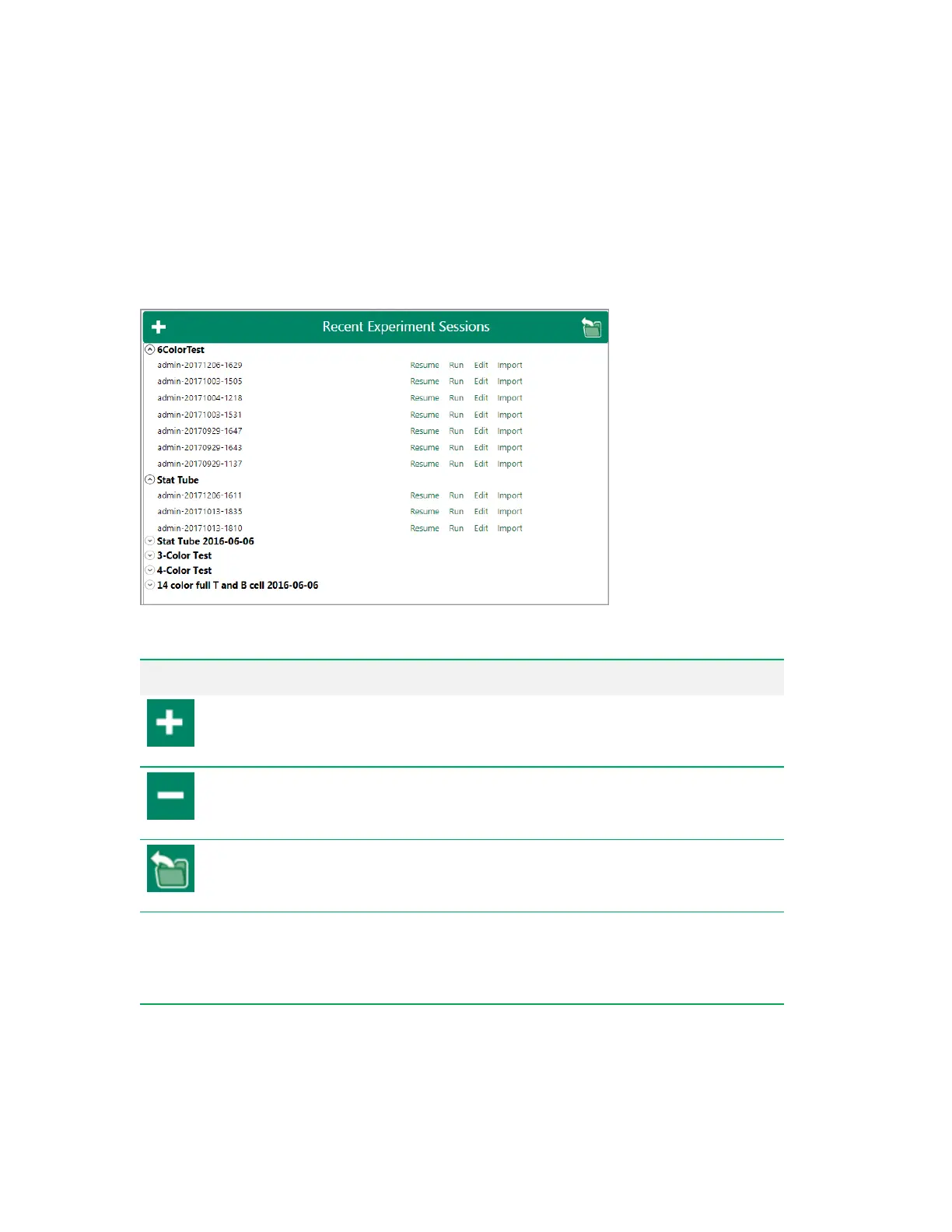 separate session . The Recent Experiment Sessions window displays a list of recent experiment