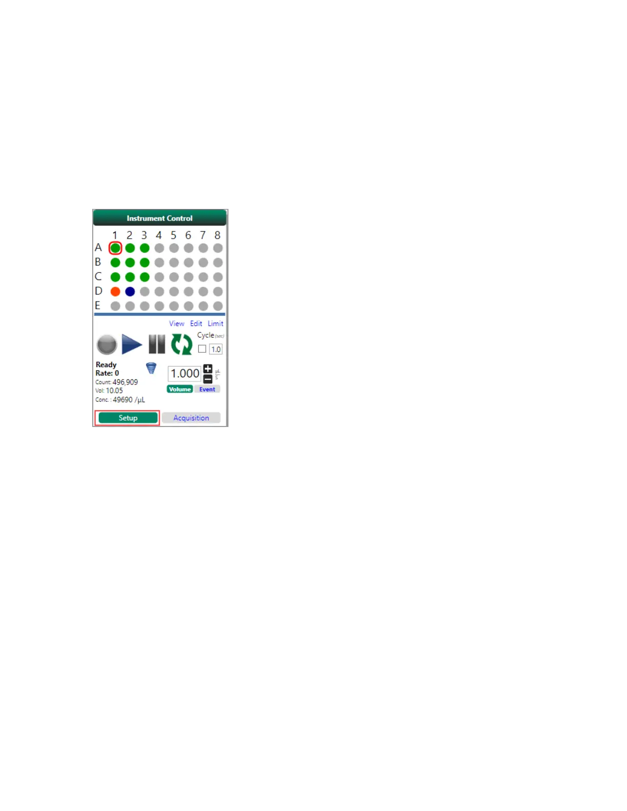 There are two modes for running samples: setup and acquisition.