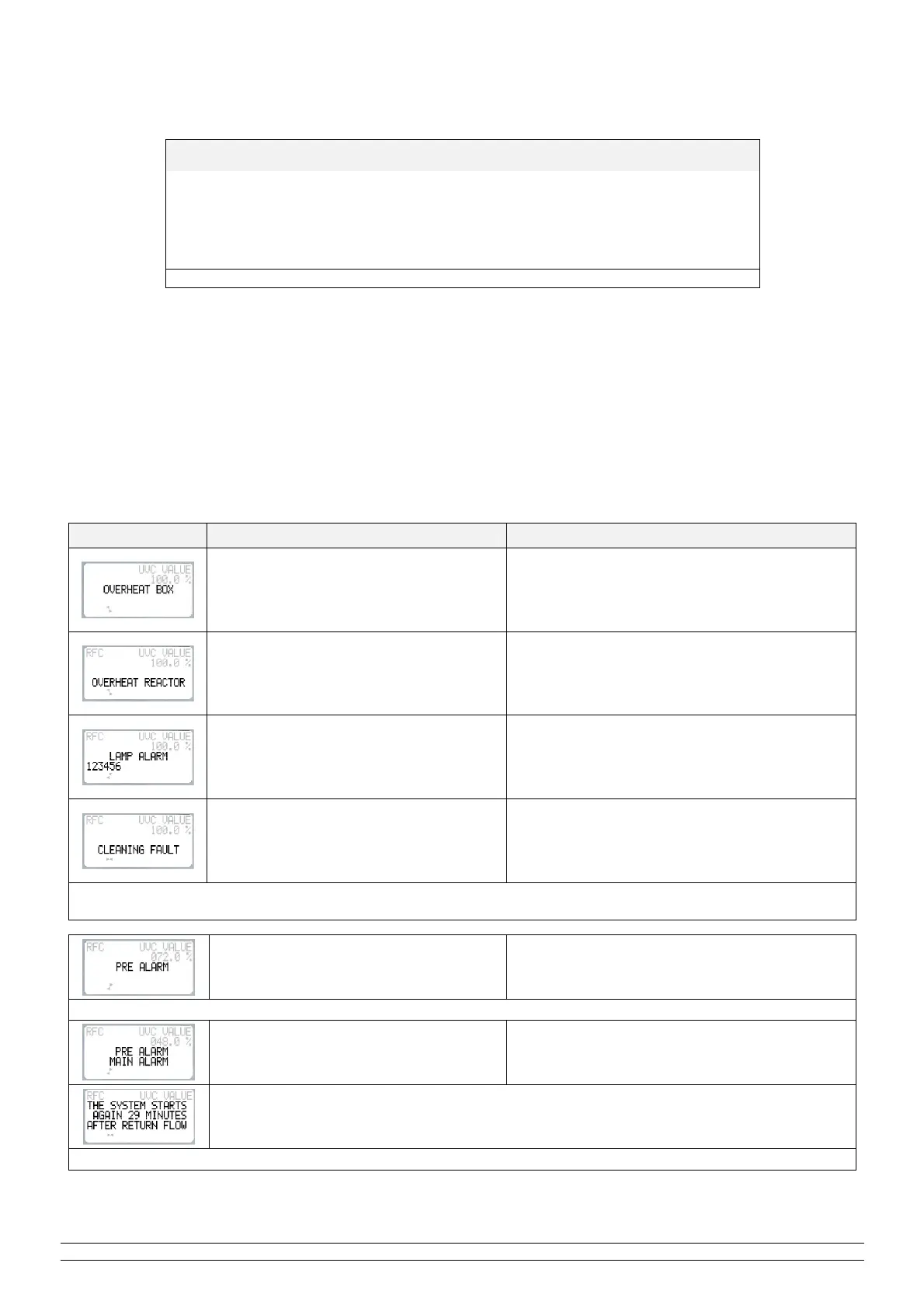 N.B.: when the lamps have been operating for a certain number of hours, this message appears naturally (normal wear of the lamps)