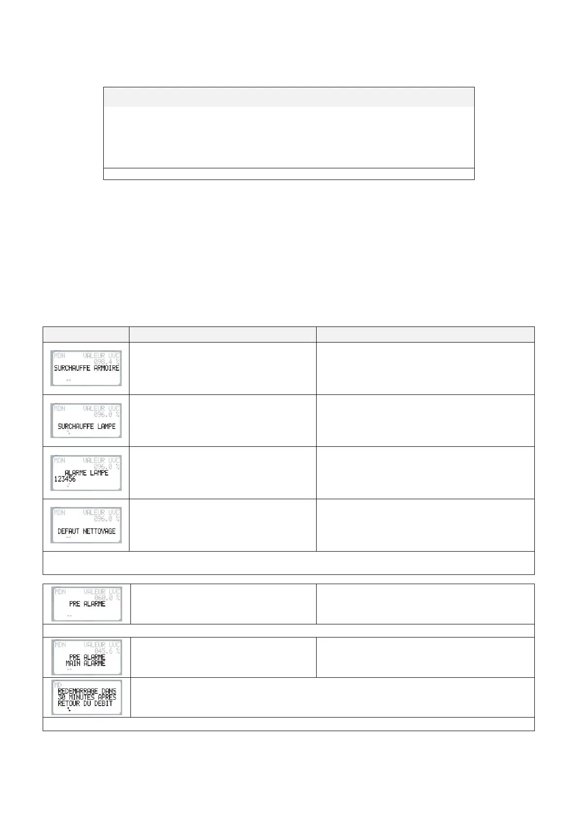 Note : à partir d’un certain nombre d’heures de fonctionnement, ce message apparaît naturellement (usure normale des lampes)