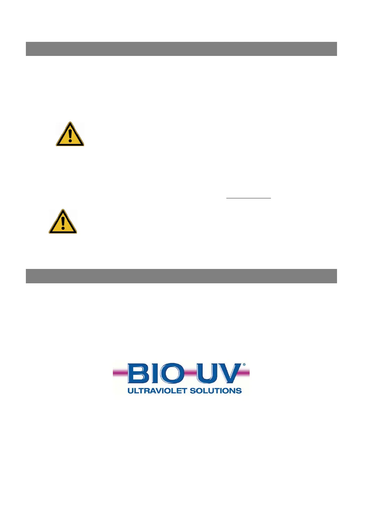 BIO-UV, enviando por correo o por fax, la validación de garantía (ver página siguiente
