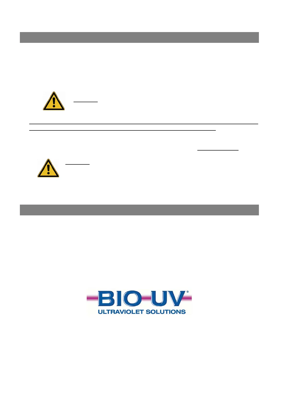 Bei fehlerhaftem Einbau sowie fehlerhaften Bedienung kann die Firma BIO-UV die Verantwortung