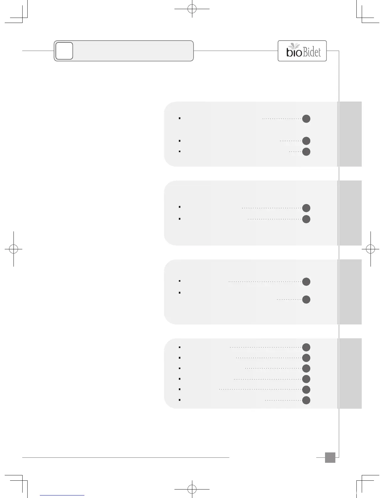 bioBidet BB-1700 - Table of Contents