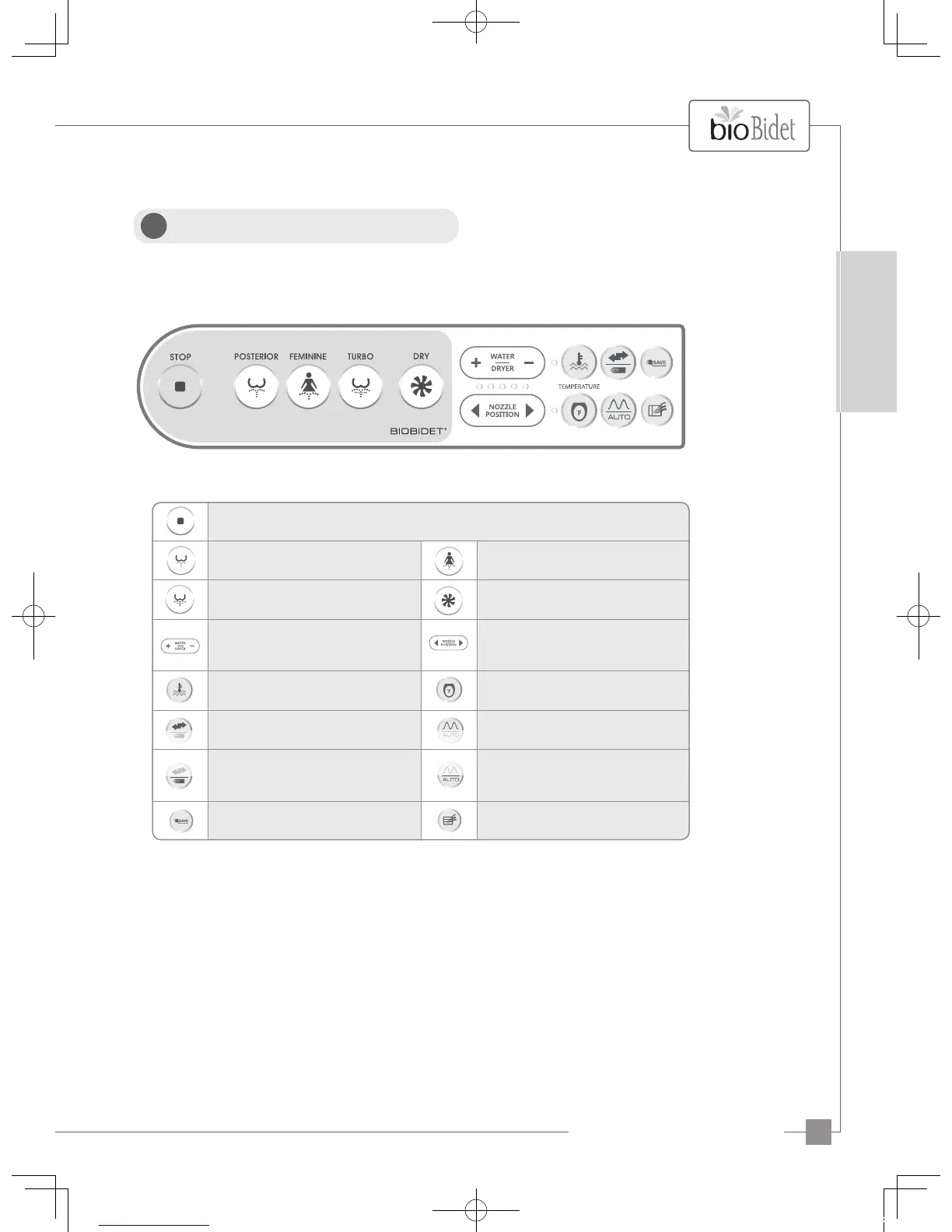 Adjust the water temperature (4 levels). Adjust the seat temperature (4 levels).