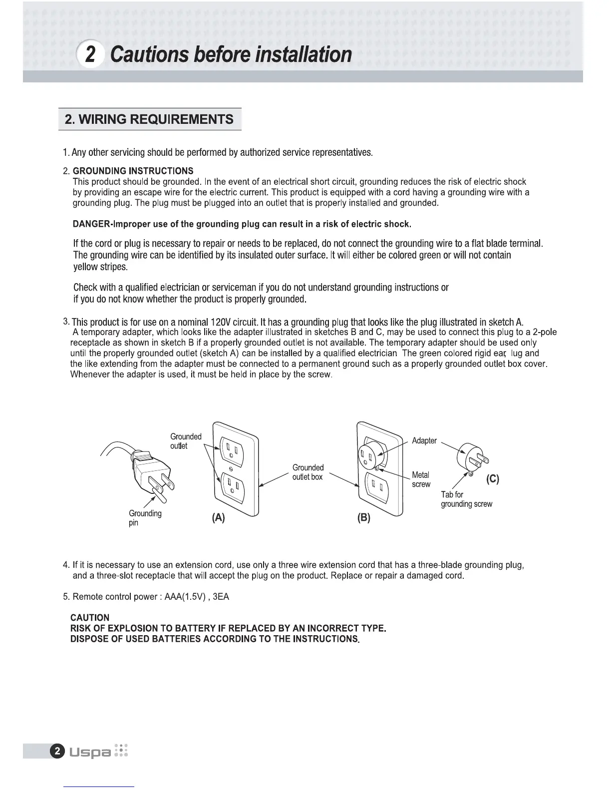 bioBidet BB-600 - WIRING REQUIREMENTS; GROUNDING INSTRUCTIONS