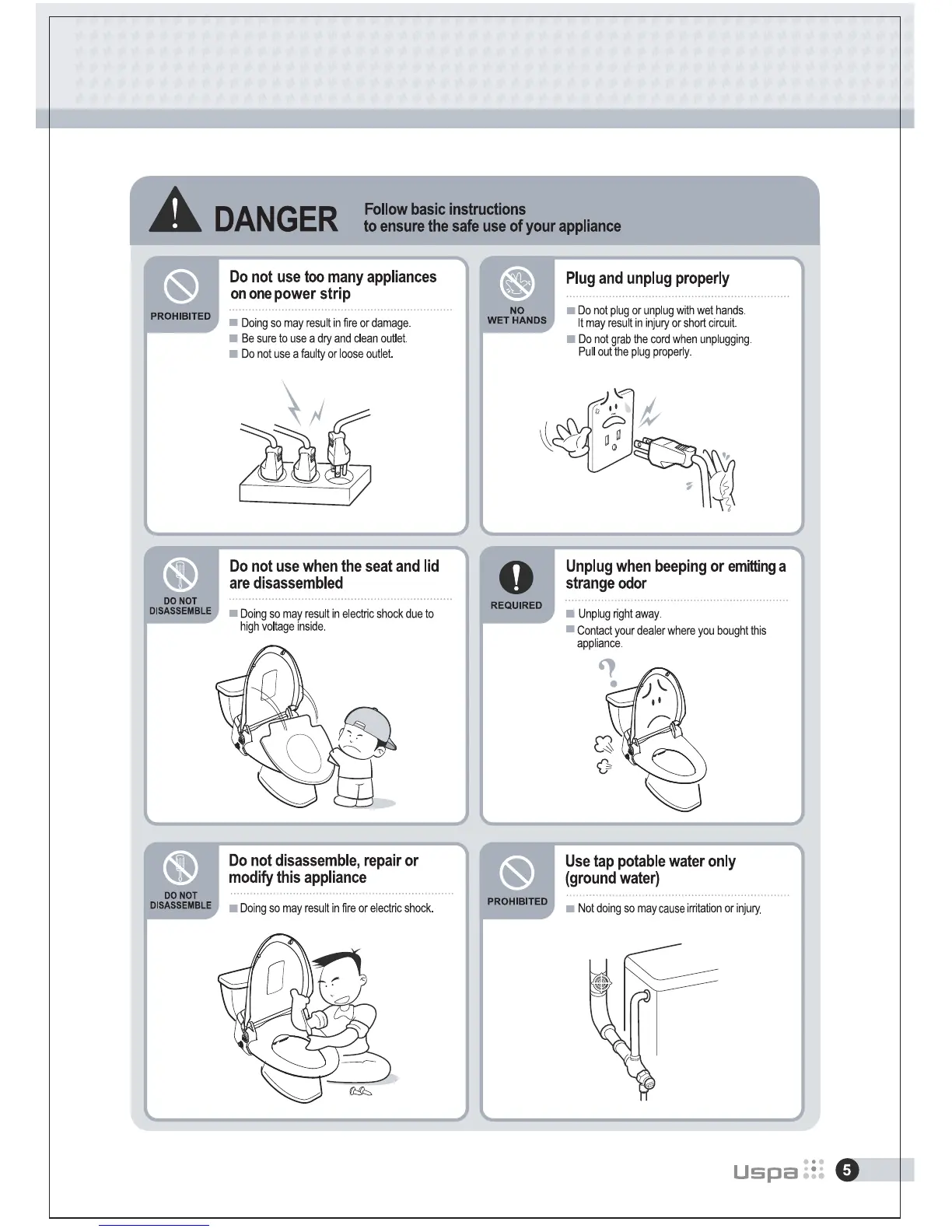 bioBidet BB-600 - DANGER - Basic Instructions; Electrical and Usage Safety; Operational and Water Usage Safety