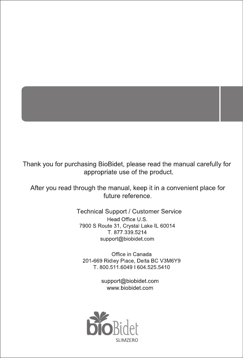 Thank you for purchasing BioBidet, please read the manual carefully for