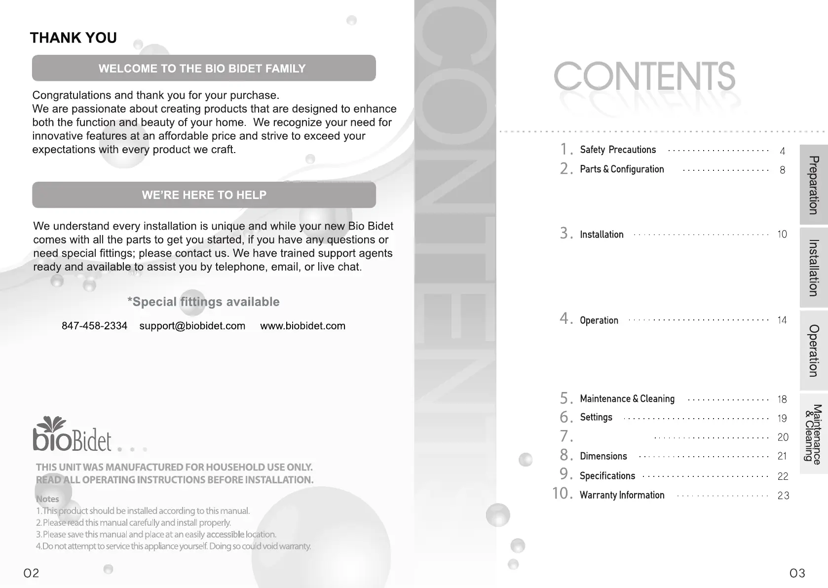 bioBidet Ultimate 770 - Contents; Troubleshooting