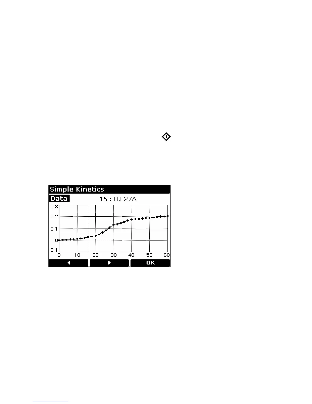 • Data points can be viewed by moving the cursor (F2 and F1); this enables