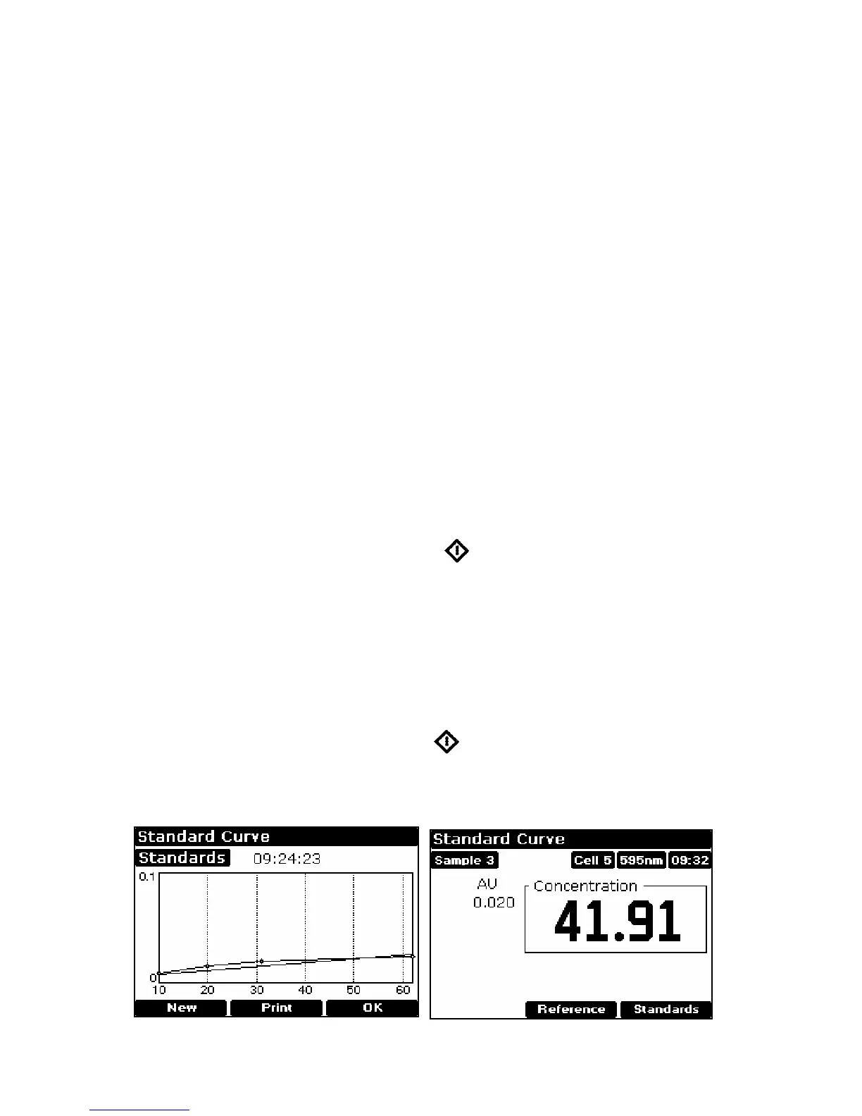 • Press Standards (F3) to see the standard curve, press OK (F3) to return