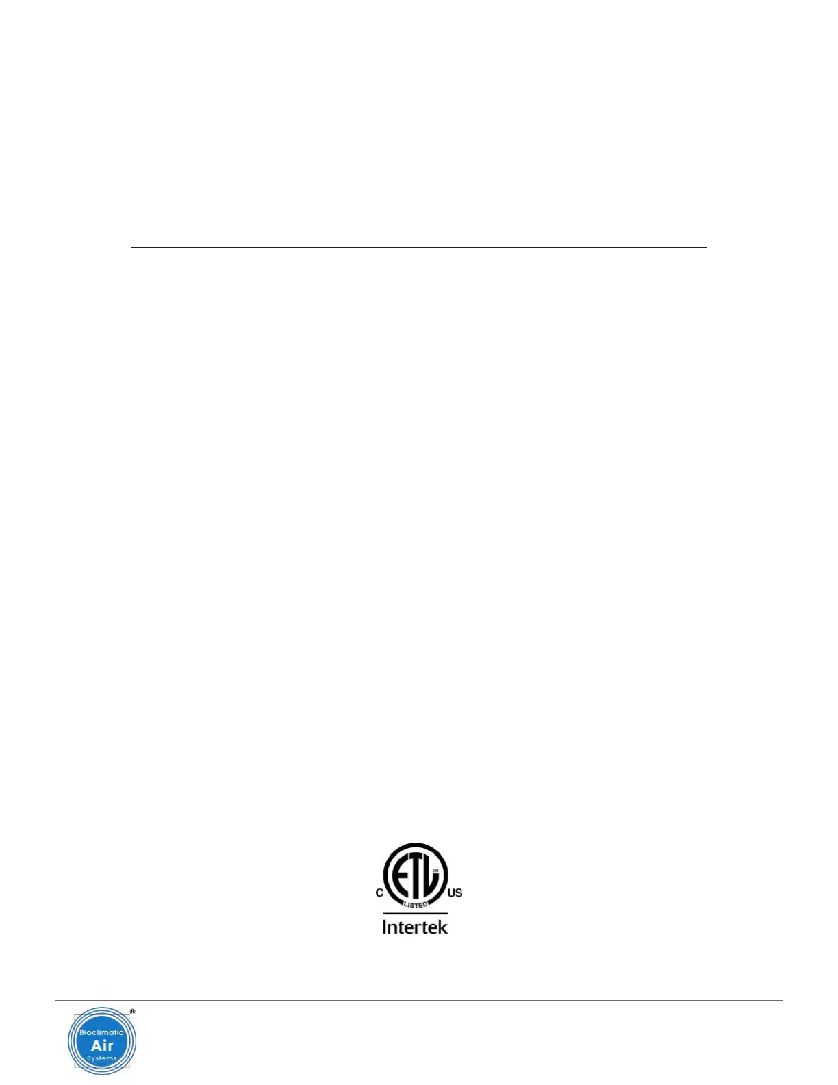 Bioclimatic Air Systems Representative for technical assistance.