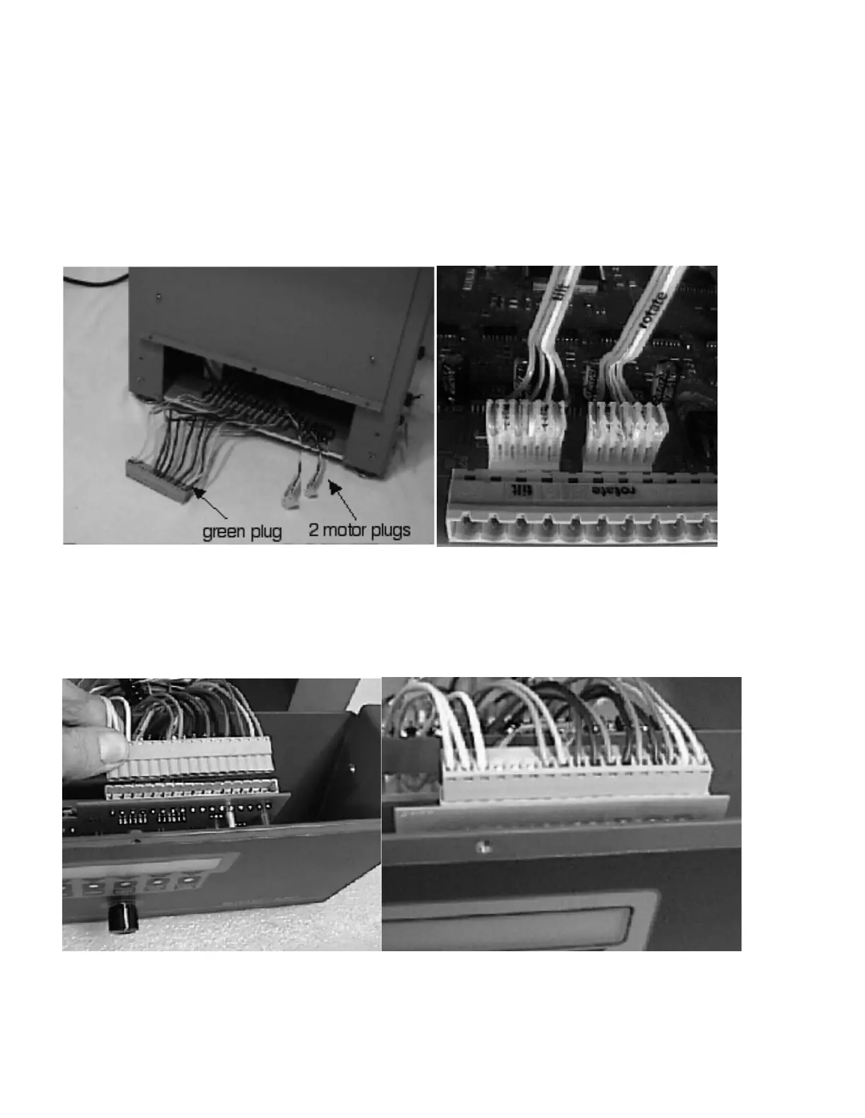 expose them as shown below. Note that the wires on the plugs are labelled “tilt” or “rotate”.