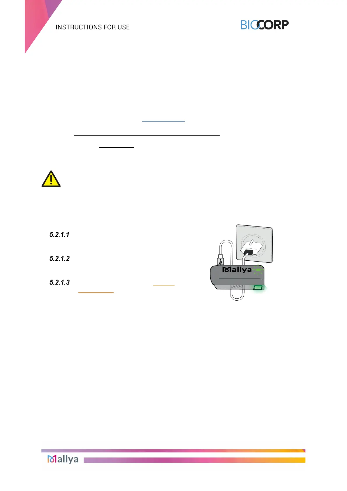 5.2 CHARGING AND CALIBRATING YOUR MALLYA