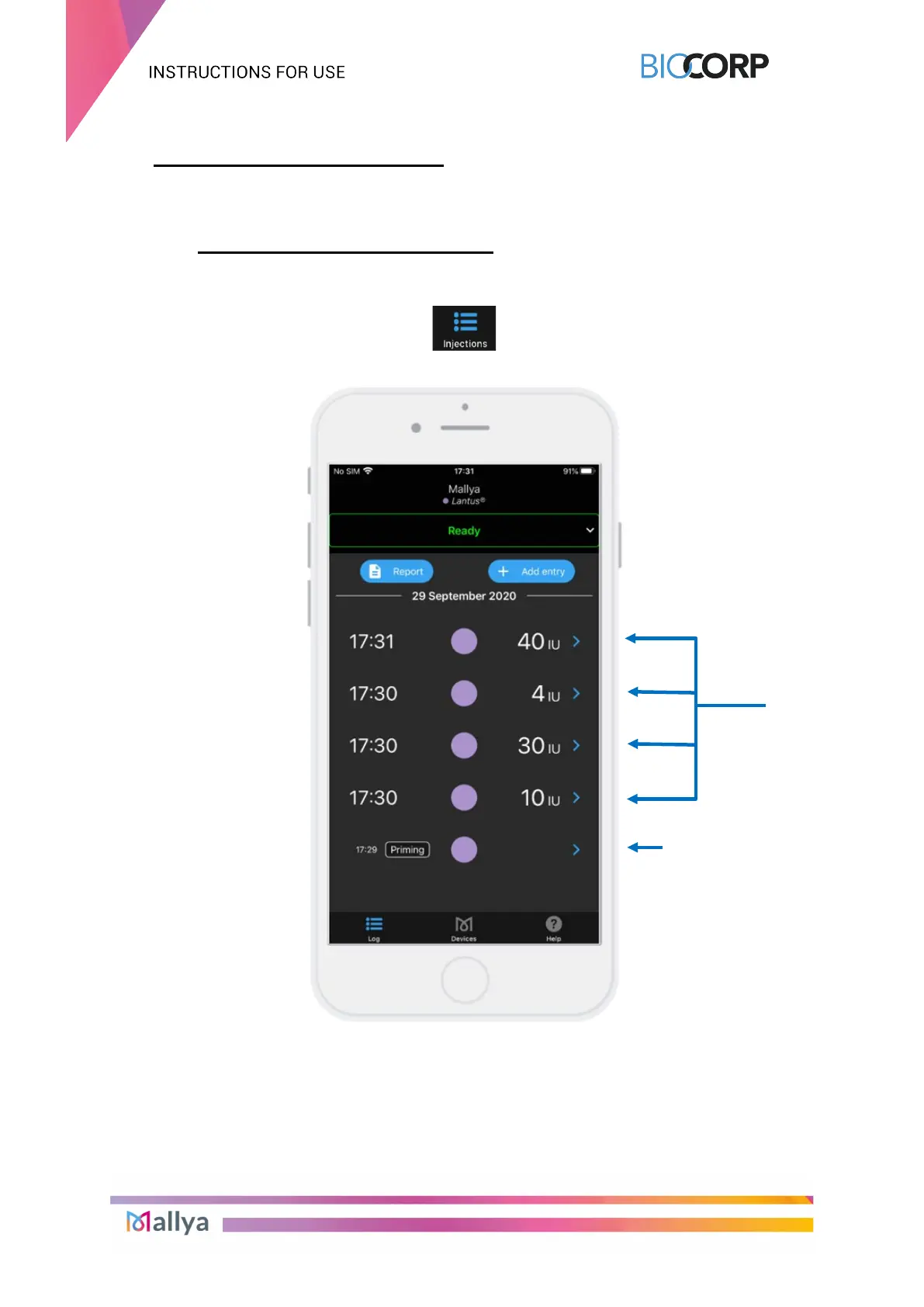 Once data is transferred from a paired compatible Mallya, you can display and manage any