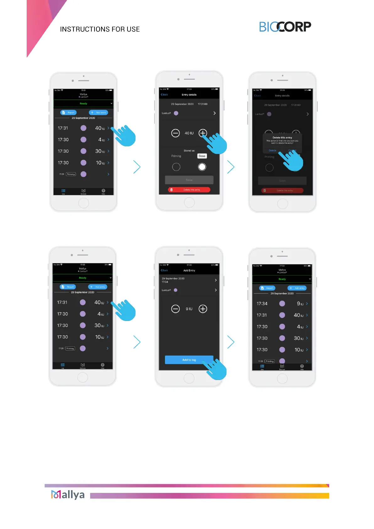 BIOCORP Mallya - You Can Delete a Dose or a Priming; You Can Add an Injection that was Not Recorded to the History