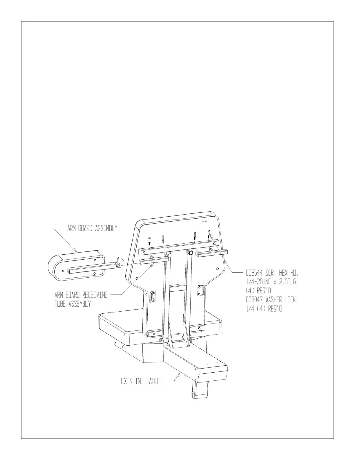 NOTE: An arm board receiving tube must be installed on