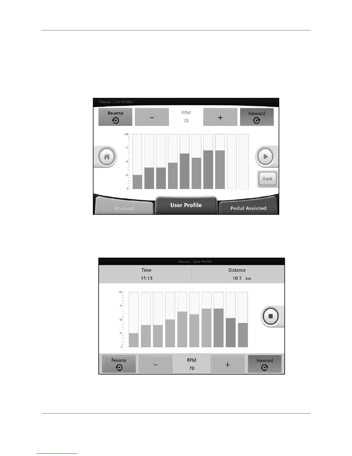 Figure 5.7. Passive User Profile Mode— rpm levels and pedal/arm cranking direction