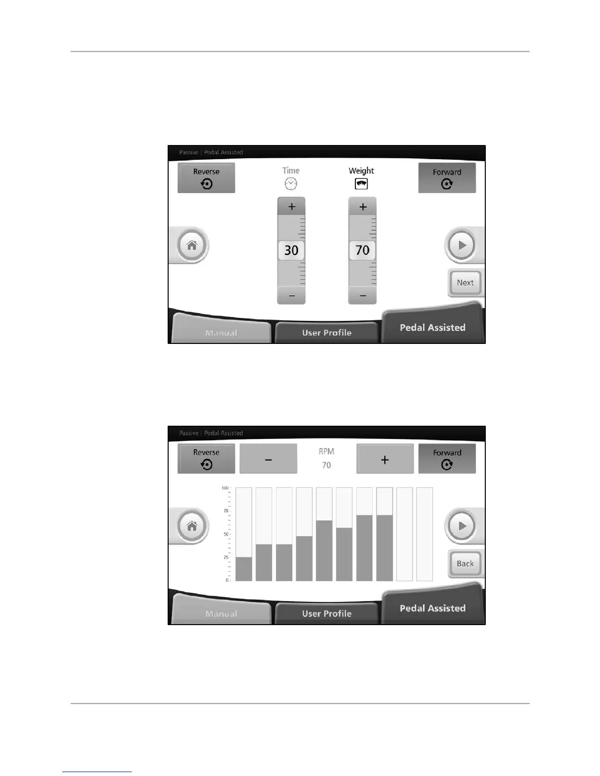 Figure 5.12. Passive Pedal/Arm Crank Assisted Mode— rpm settings screen (individual