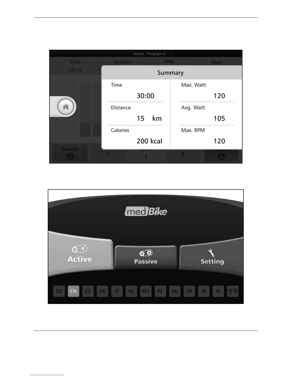 If you press the <RED SQUARE> button to stop the exercise, you will see the results data from