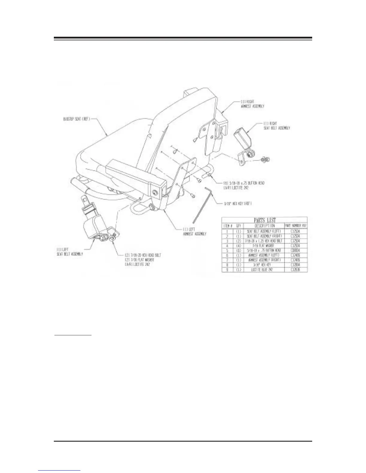 The optional Stabilization Kit (950-245) provides flip-up/flip-down arm rests, a seat belt and