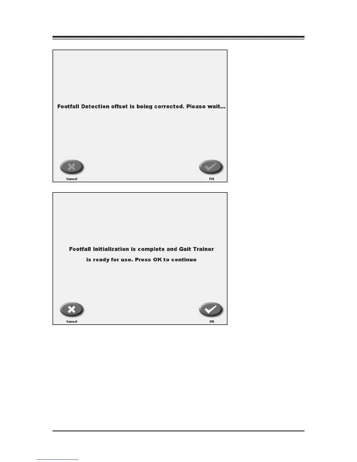 If in the unlikely event, the Gait Trainer can not bring the strain gages into the necessary ranges,