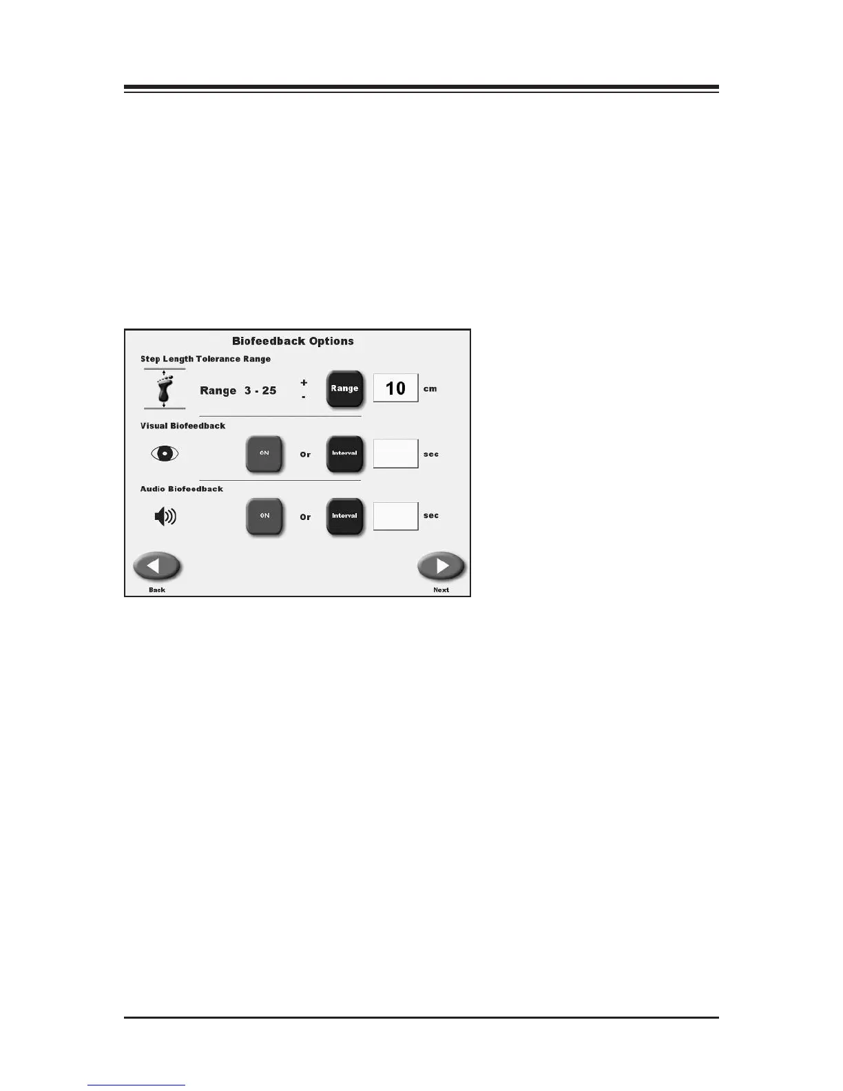• Set Audio Biofeedback ON/OFF Interval Time: Touch <ON>, <OFF> or <Interval> and enter the